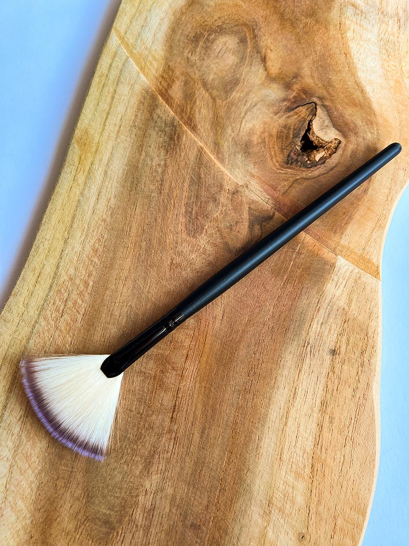 Lekki pędzelek typu miotełka przeznaczony do delikatnego usuwania nadmiaru brokatu z twarzy i ciała. Idealny do tatuaży brokatowych i stylizacji artystycznych.