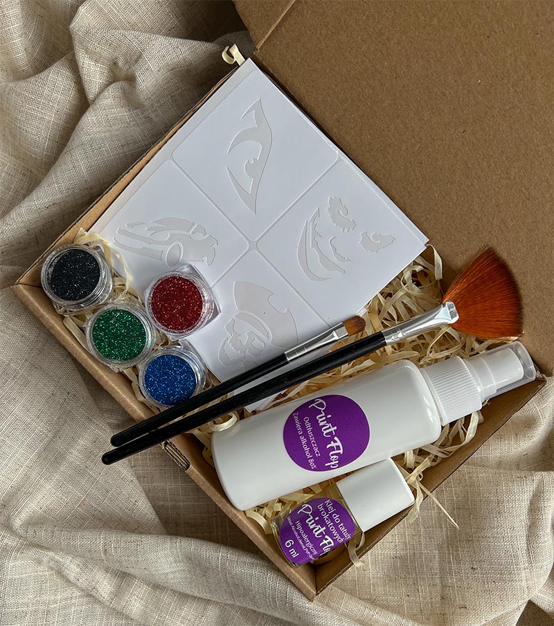 - 1 x Klej do brokatu, op. 6 ml (zmywalny) hipoalergiczny. Posiada Attest.